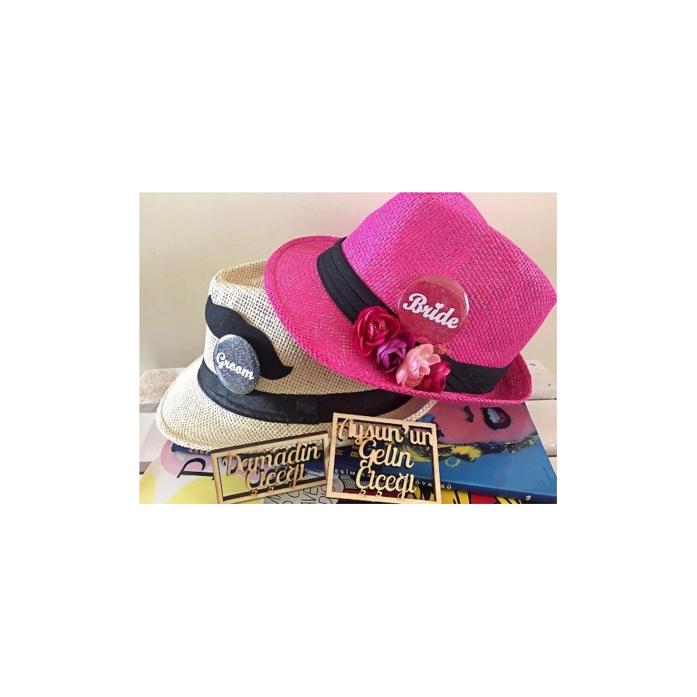 PEMBE VE KREM HASIR GELİN DAMAT ŞAPKA