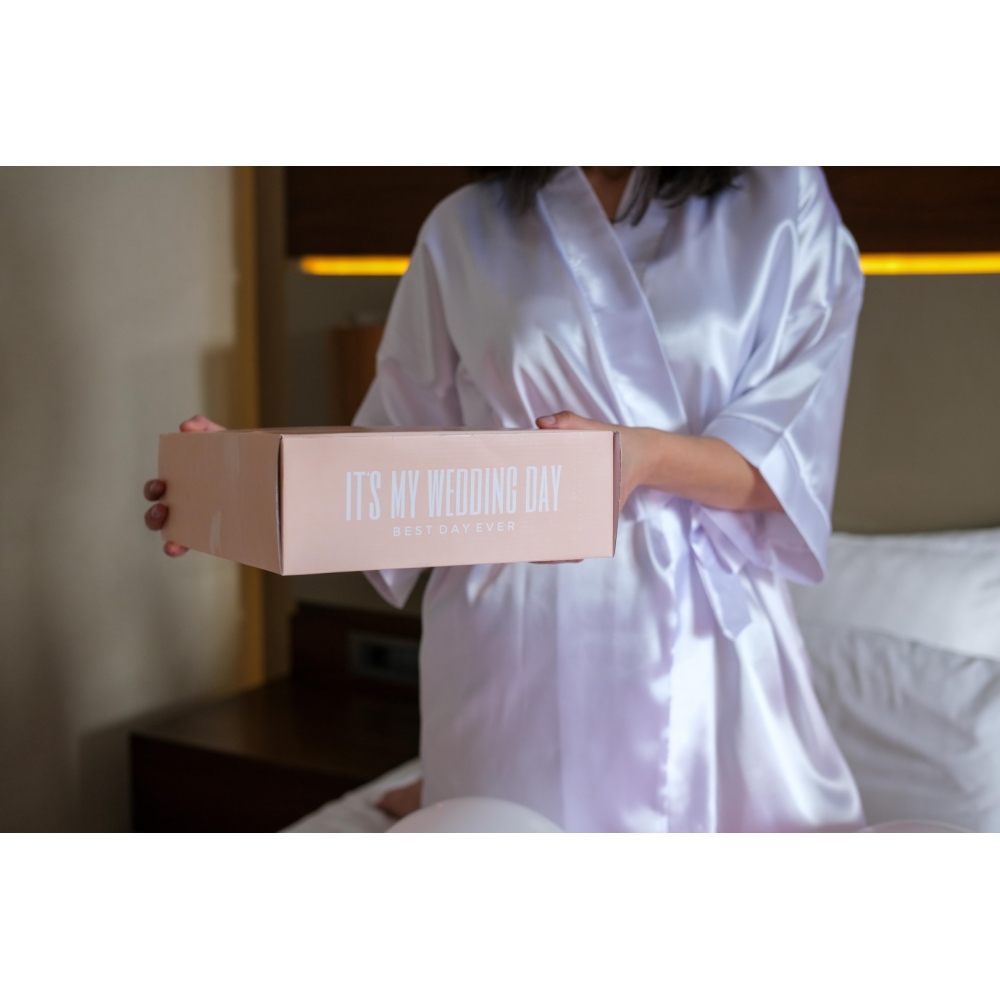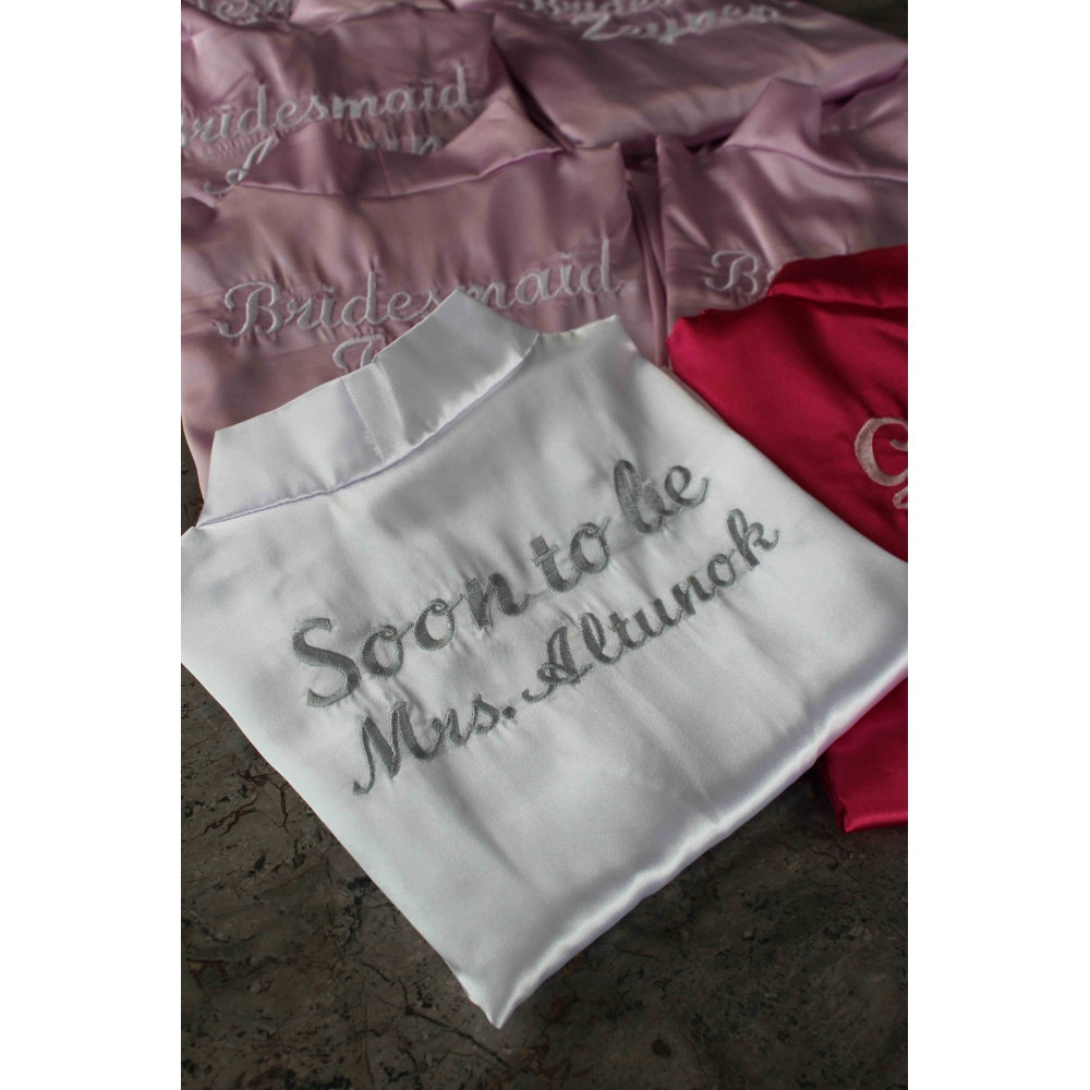 Gümüş İplik İle Kişiye Özel Nakış İşleme Yapılır. Beyaz Renk Saten Kumaş Kullanılır.