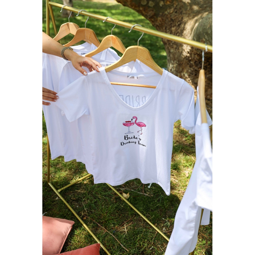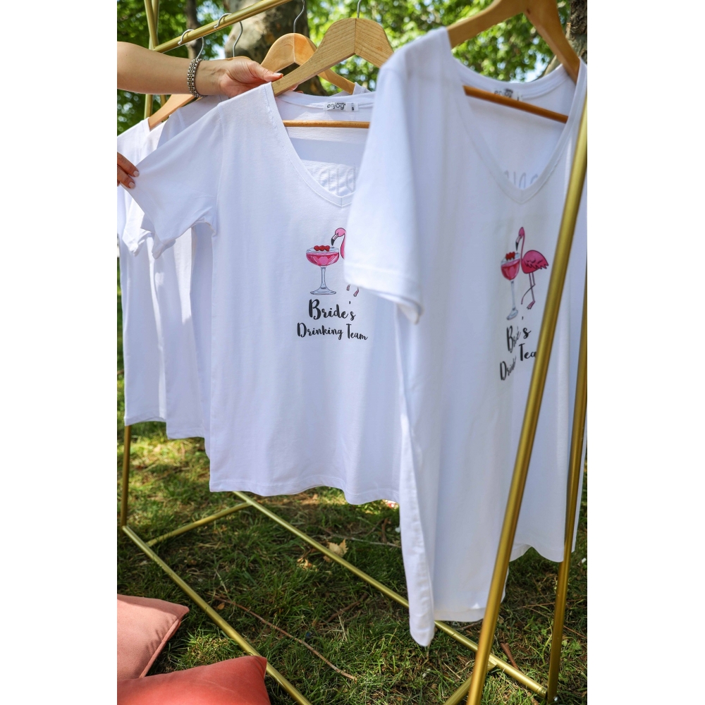 V Yakalı, tam pamuklu, rahat kalıplı tişortlar kullanılır. Standart bedendir 36-40 beden kullanımına uygundur.