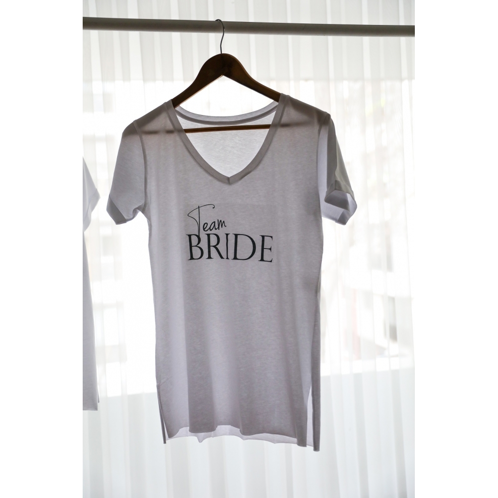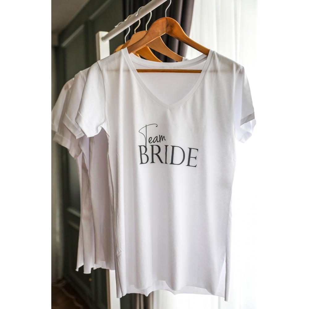 Team Bride baskı detaylı V yakalı beyaz tişort