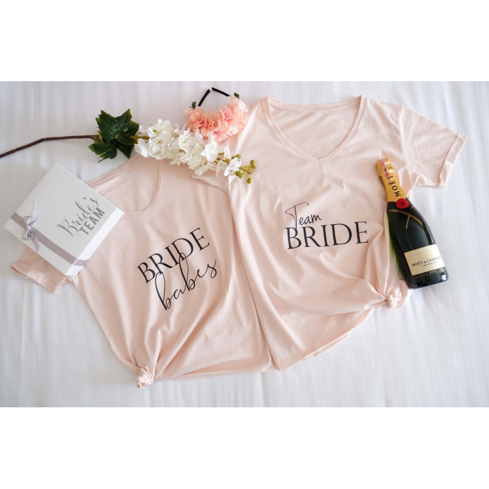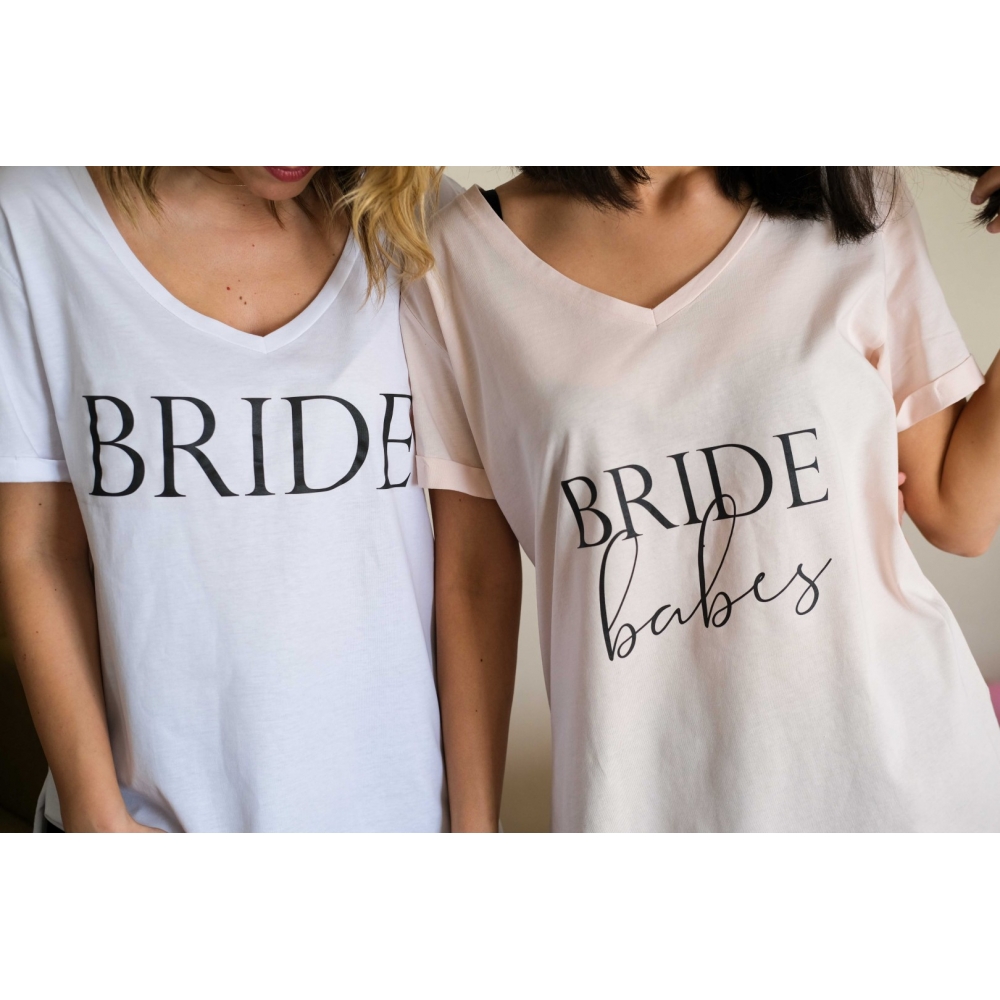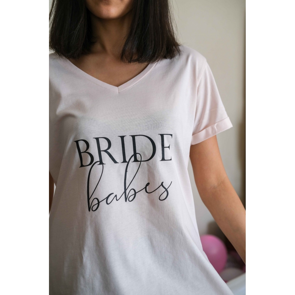 Bride Babes baskı detaylı V yakalı açık pembe tişort